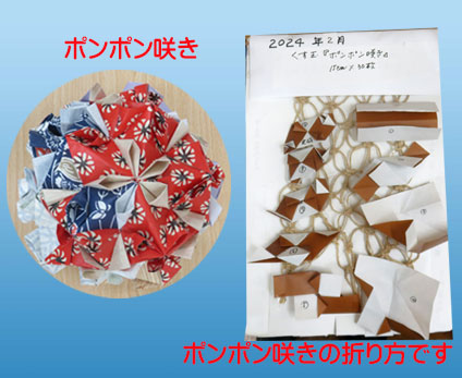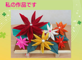 右の方は先生のをお借りしたポンポン咲きの折り方です。 |