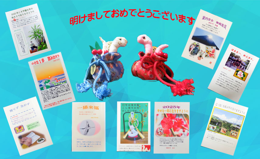 | 2025.01.05 元旦にJPCの皆様から心温まる冬はがきが届きました、ありがとうございました。健康に気を付け転ばないように注意巳を結ぶ一年になりますように。今年もよろしくお願いします。 |