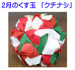 | 2025.02.01 2月のくす玉コレクションは15㎝×15㎝で30ピースの「クチナシ」です。折り方は少し難しく時間がかかりました。花びらが5枚集まり可愛いくす玉です。折り紙の色や飾り付けを工夫されています。 |