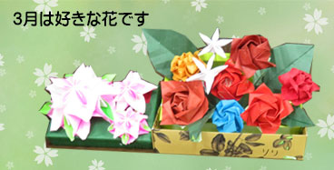 2025.03.01 私はサクラ、バラ、ジャスミンを折りました。素敵な柄のお菓子の箱に飾り付けしました。 |