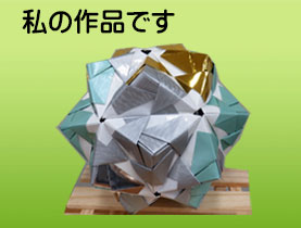金色、銀色、水色の少し厚みのあるで折ったので折るのに時間がかかりました。組むのも硬くて大変で穴が空いてしまいました。 |