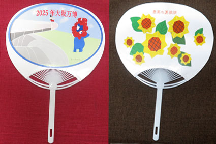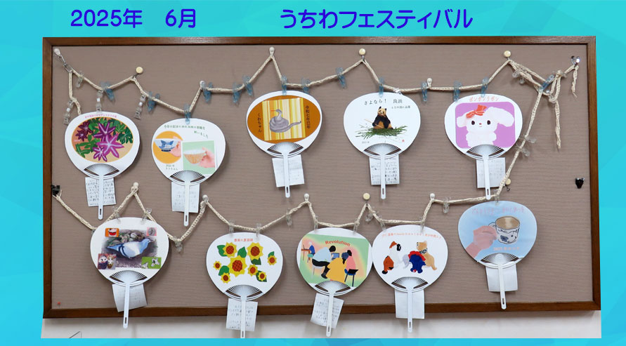 | 2025.06.01 今年のうちわフェスティバルがはじまりました今年らしさをだすのが課題でした。ミャクミャク君、パンダ、や思い出に残したい事を絵に描きうちわにしました。 |