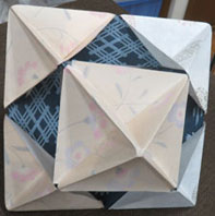 和風のような柄の土台にキャップのようなものを六つ作りとがった部分にさしました。差し込む時力の入れ具合うで破れたりするのでしにくかったです。 |