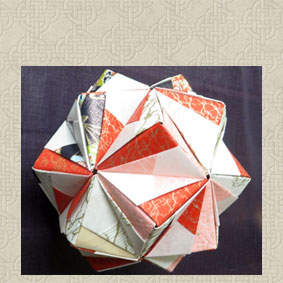 私の11月のくす玉コレクションの割り菱です。家にあった和紙のような折り紙で折りました。古風なくす玉になりました。