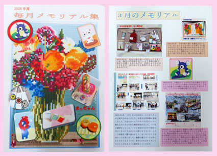 お花の細かいアートパネルに手芸品やミャクミャクなどのクリスタ画。私もボッチャに興味があるので3月を選びました。お花見など地域の活動が盛んでいいですね。クリスタ画のクマさん可愛いですね。 |