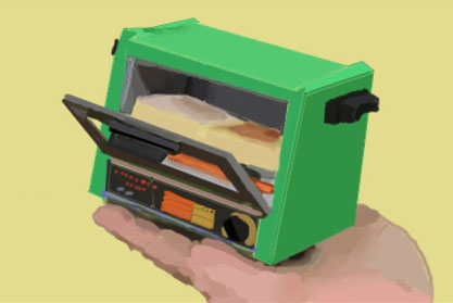 1月にフエルトで作った懐かしの昭和レトロミニチュアのオーブントースターを手のひらにのせてクリスタ画で描きました。トースターの中とドアが難しく先生に教えて頂きながら描きました。手のひらは影を描くのが難しかったです。 |