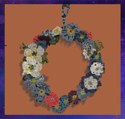 フラワーリースをクリスタ画で描きました。細い糸で編んだプリムラ、節分草、雪割草を描き始めましたが初めは難しくて何度も描き直しました。先生に教えていただき時間はかかりましたが可愛いお花のツリーを描けました。 |