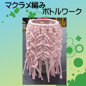 のとちゃん、マクラメ編み「ボトルワーク」 りりちゃん、マクラメ編み「ボトルワーク