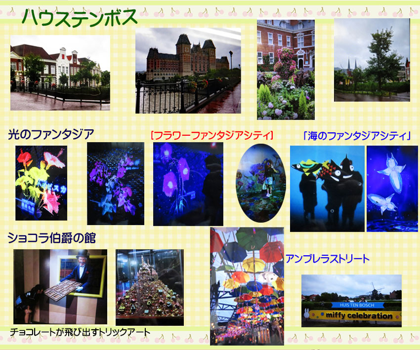 6月24日から里帰りしました。できる範囲の手伝いをしたり兄弟や義姉、甥、友達と会ったりして過ごしていました。週末に次女と孫娘が来てハウステンボスで一日中遊ぶ計画していましたが梅雨時期で雨の日が続いていました。30日にハウステンボスに小雨の中行きました。孫は初めてで喜んでいました。沢山のあじさいが植えてありましたが花の時期は過ぎていたので残念でした。パークバスで移動して室内のアトラクションで楽しみました。他にもハウステンボス歌劇団など観たかったのですが疲れてきたので兄に迎えに来てもらい帰ることにしました。次の時は花が綺麗に咲いている時ゆっくりいきたいと思います。娘達は雨が止んだので室外のアトラクションで夜まで楽しみました。 |