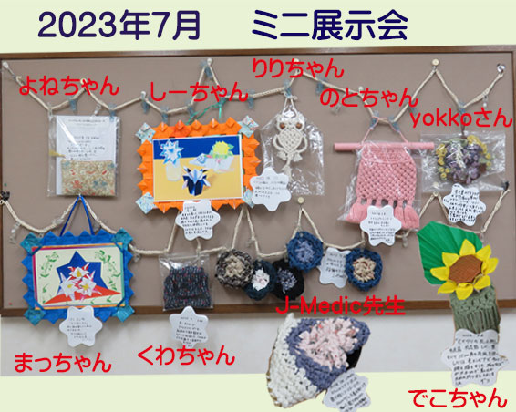 5月のミニ展示会です。今月は手の込んだ細かい作品が多く展示されていて楽しませていただきました。