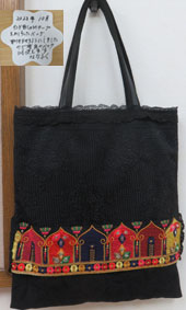 ななふくさん インド刺繡のテープをあしらったバックレースに接着芯を貼られ工夫されています。刺繡のテープを付けられ素敵です。 |