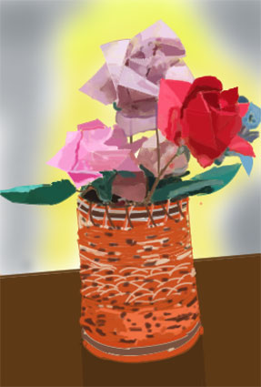 しーちゃん、クリスタ画「花小物」 透明感をだされていて素晴らしいです。