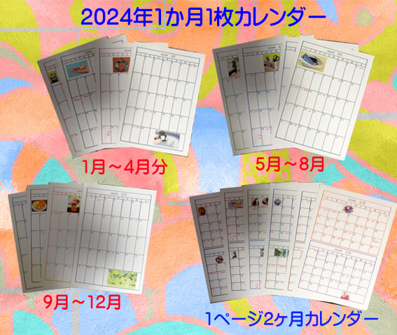 2024年の1か月1枚、1ページ2ヶ月のカレンダーを遅くなりましたが作りました。これまでに描いたクリスタ画を入れました。 |