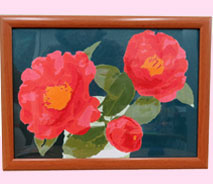 よねちゃん 和筆で塗り咲かせる和花の絵画「山茶花」 、番号通り塗られて楽しく作業されたそうです。華やかな山茶花ですね。 |