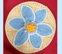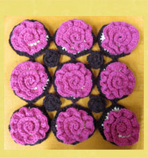 でこちゃん かぎ針編み花ざぶとん「いつまでも一緒」 編んで図案どおりに編みつけるのが大変で時間がかかったでしょうね。とても綺麗に編まれて素敵です。 |