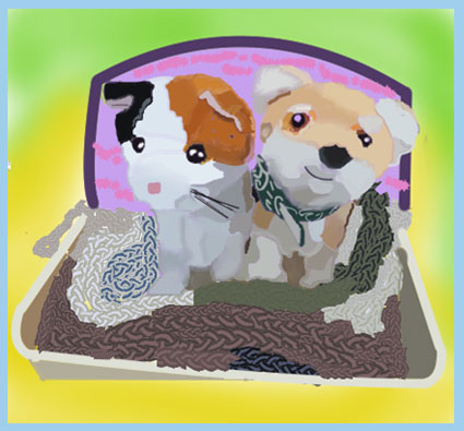 次のメンバーページに何を絵を描こうかと思いながらJPCにいきました。入口で出迎えてるシバ次郎とミケ太と目があったように思いました。寒い日に仲良く布団の中にいるシバ次郎とミケ太をクリスタ画で描きました。 |