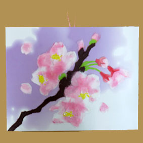 | くわちゃん 繊細で美しい和紙のちぎり絵「さくら」白い和紙の上にピンクの和紙を貼るのは薄いので大変だったでしょう。素敵なサクラの花ですね。 |