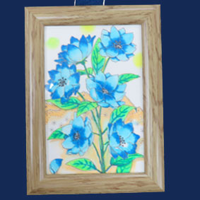 よねちゃん 「水彩画タッチのペン塗り絵」ブルーの花が6輪、幸せな気分になれていいですね。額に入れるととても素敵ですね。 |