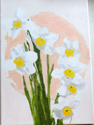 のとちゃん 「アクリル絵具画「水仙」 絵の具が伸びにくく塗りにくかったようですが綺麗な花が咲いています。 |