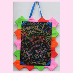 でこちゃん 「折りたたんでサイドを塗って表に返して出来るバック」簡単と聞いて教えてもらいましたが折りたたんで表にする時が難しいです。お友達は喜ばれたでしょうね。 |