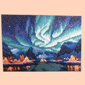 番号と色番を専用ペンで貼っていくのは疲れますね。綺麗なオーロラになりましたね |