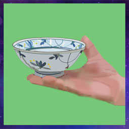 家族で焼き物町波佐見(はさみ)に行き沢山展示してある中から自分が気に入ったご飯茶碗を買ってきました。娘が気に入った茶碗をクリスタ画で描きました。手はなかなか上手く描けませんでした。 |