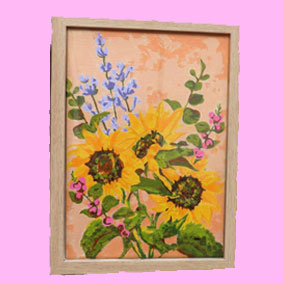 でこちゃん 画家気分で優美な絵画「サンフラワー」固まってしまった絵の具で塗られて苦労されたとおもいますが細かい所も綺麗に塗られています。 |