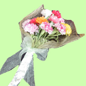 まっちゃん 花束「カーネーション」母の日のプレゼントにふさわしい花束。いろいろな色で華やかで丁寧に作られています。 |