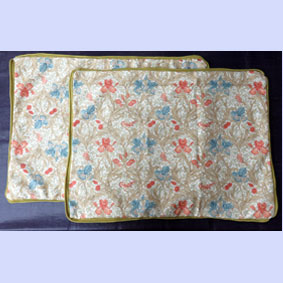 | J-Medic先生 ベストオブモリスのキッチン雑貨「アイリスのランチョンマット」布の間にテープを挟み込むのは時間がかかり大変ですね。テーブルが華やかになりますね。 |