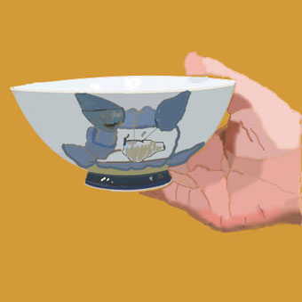 3回目の手と茶碗をクリスタ画で描きました。今回は夫が気に入って買った波佐見焼のお茶碗です。花の柄が気に入ったようですがクリスタ画で描くのは難しかったです。少し大きいので使い易いようです。 |
