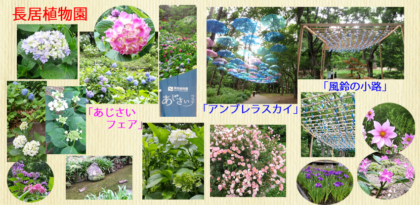 久しぶりに長居植物園に行ってきました。いろいろな種類のアジサイの花が咲きはじめていました。傘をつるしたフォトスポット「アンブレラスカイ」と風鈴を飾り付けた「風鈴の小路」を初めて設置されていた。涼やかな音色を楽しめるスポットでした。 |