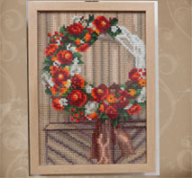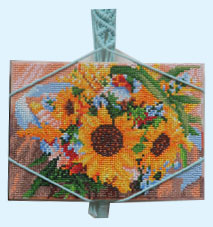 しーちゃん アートパネル「ひまわり」 細かいビーズで綺麗に貼られていますね。マクラメで編まれたフォトフレーム素敵ですね。 |