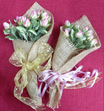 まっちゃん 花束 手芸教室で作られてた小花の花束です。蕾は小さいので時間がかかったでしょうね。プレゼントにいいですね。 |