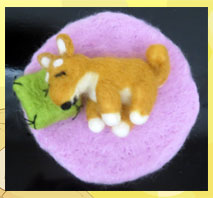 りりちゃん 羊毛フェルトコースター「のんびり柴犬」はじめて羊毛フェルトで柴犬を作りました。手を何回か刺しましたが作るのが楽しくなり可愛い柴犬になったと思います。 |