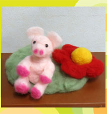 J-Medic先生 羊毛フェルトコースター「ちょこんと子ブタ」手足を伸ばしてお座りしてゆっくりしているのでしょうね可愛いですね。 |
