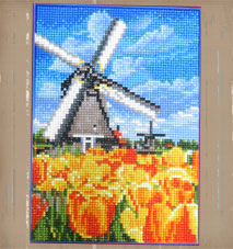 りりちゃん 旅行気分で憧れの地描くアートパネル「オランダのチューリップ」ハウステンボスを思い出しながら作業しました。チューリップの一番きれいな時に帰りたいです。 |